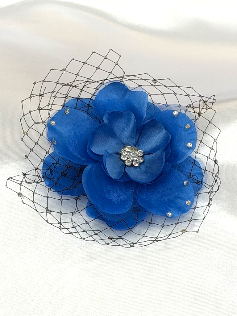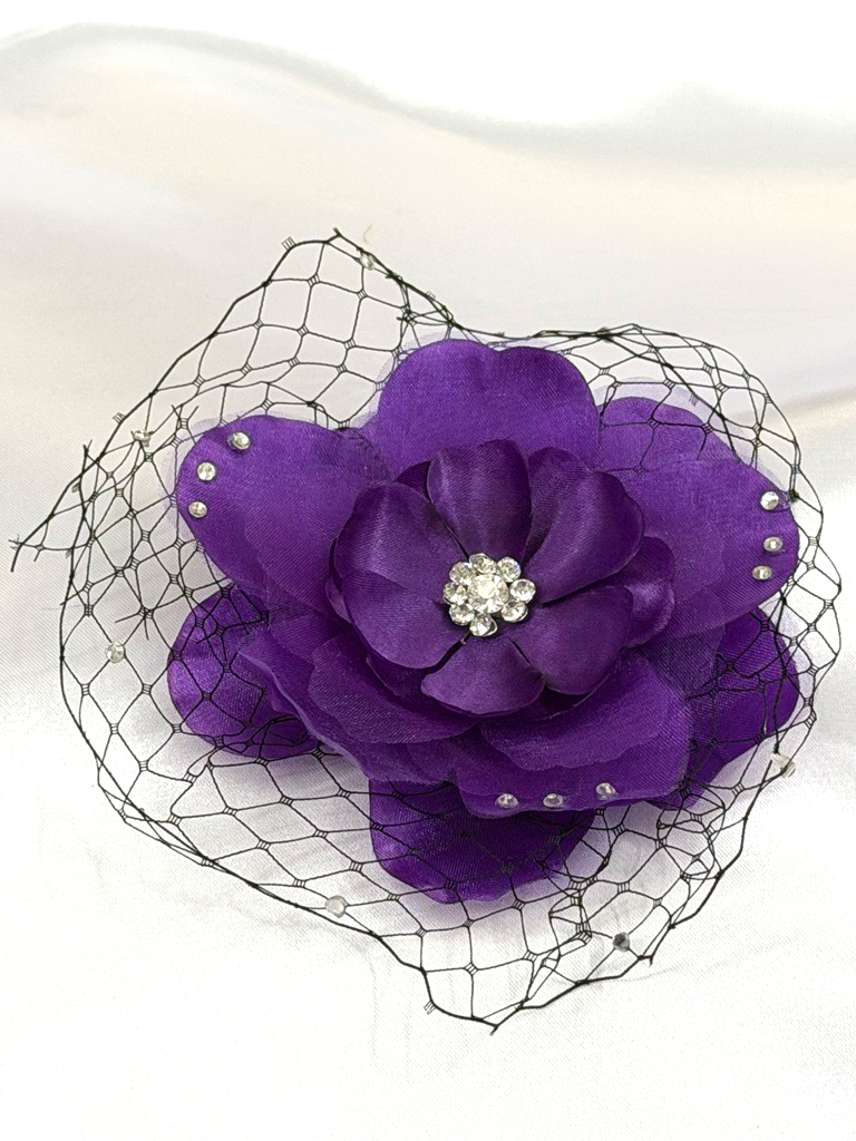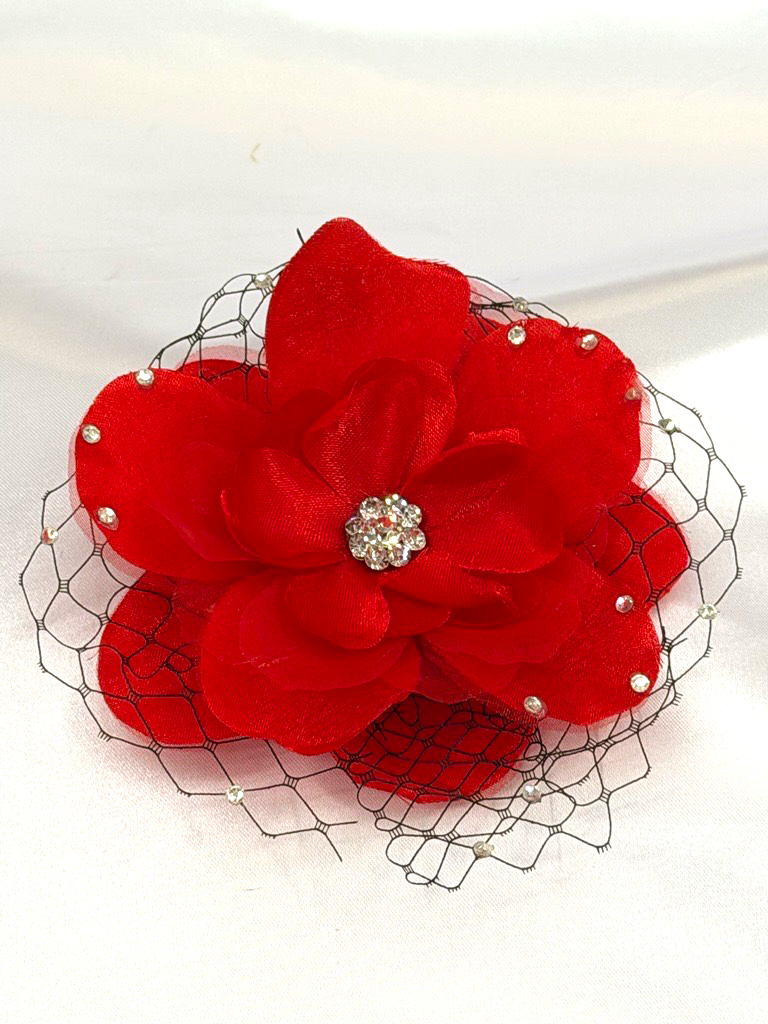 Flower hair clips with Rhinestone & Black fishnet accents
