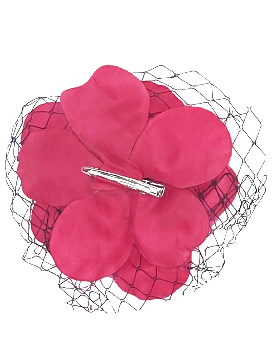 Flower hair clips with rhinestone center and black fishnet accents
