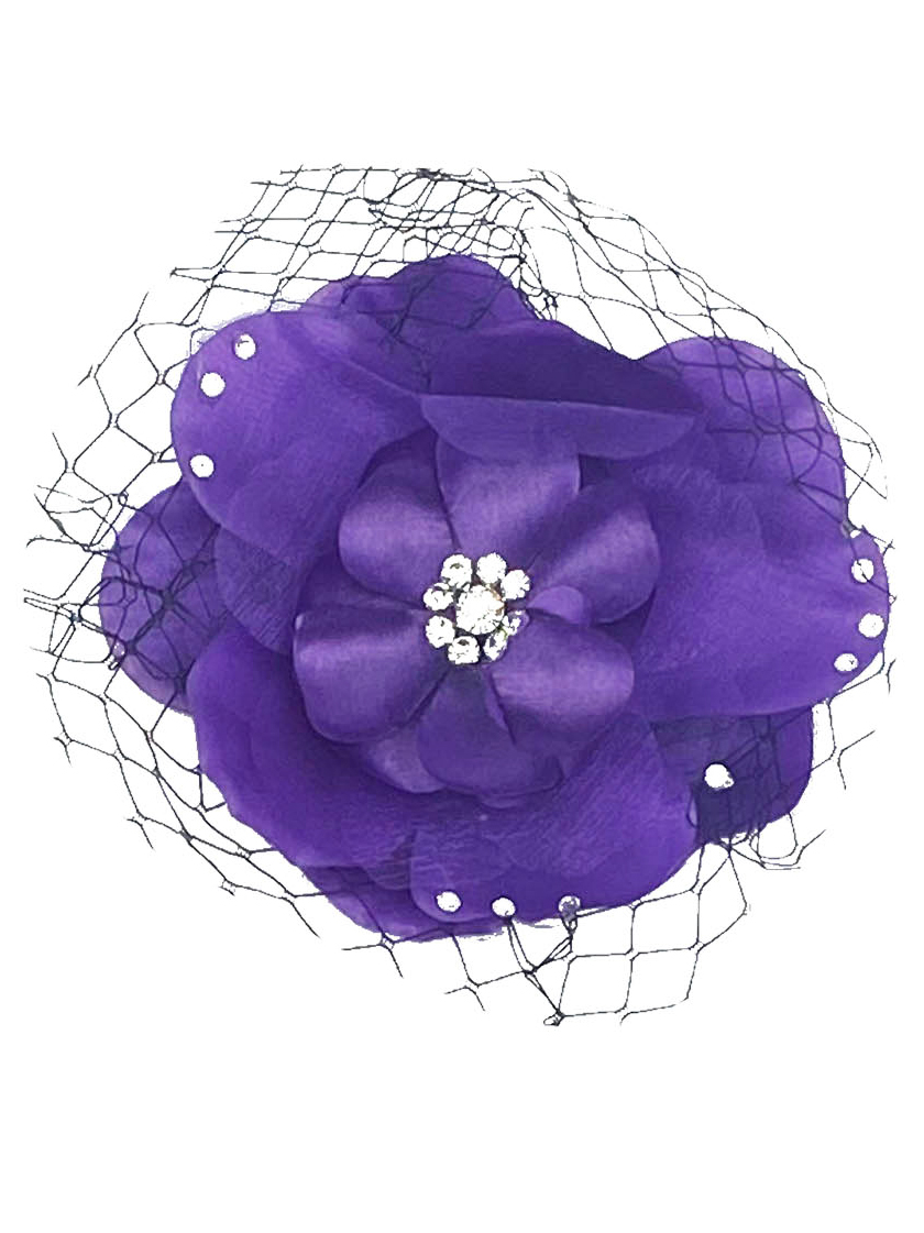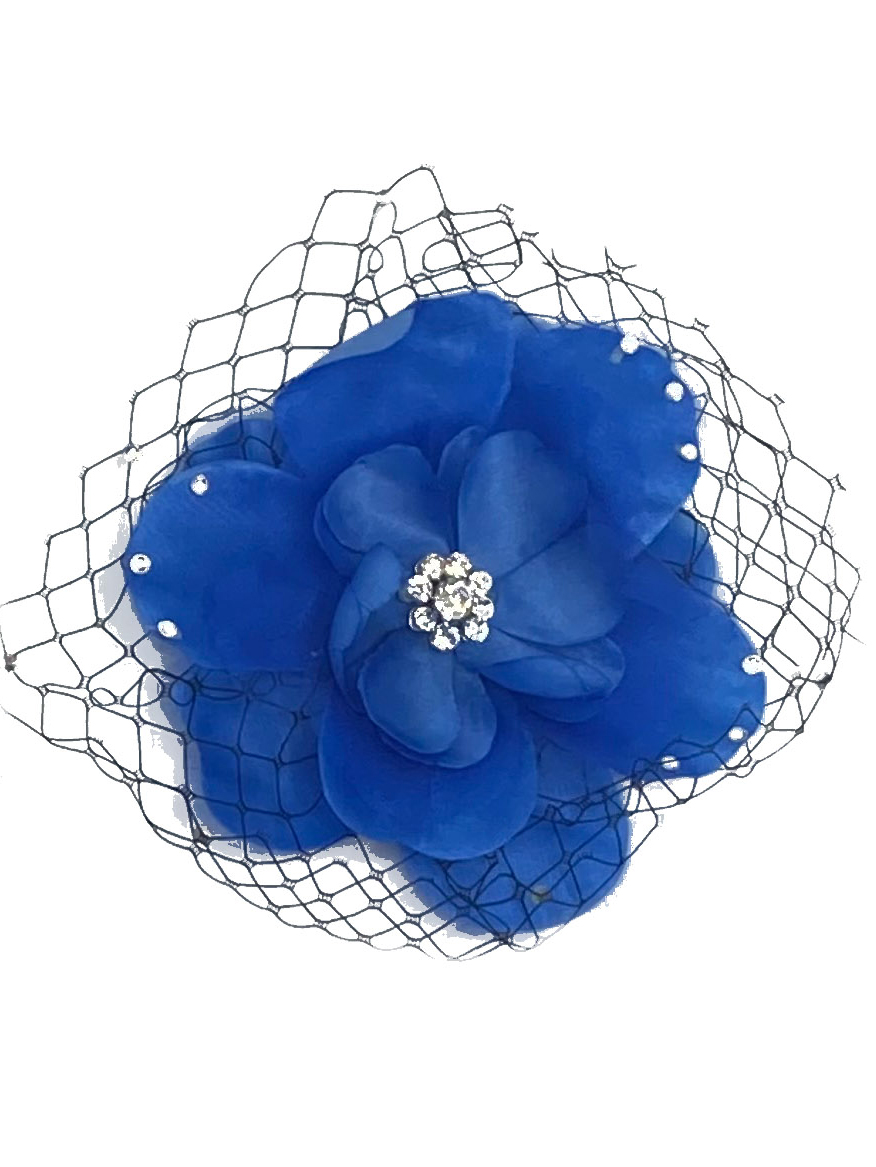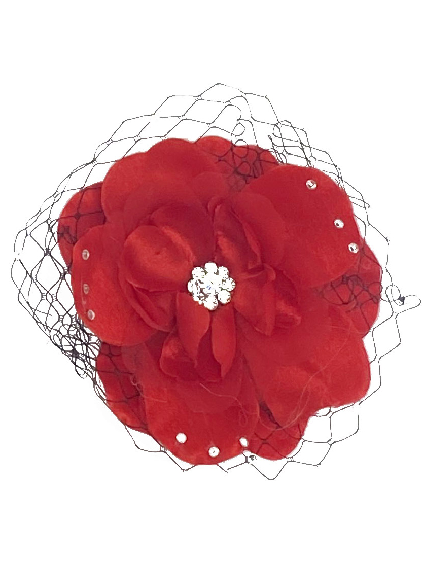 Flower hair clips with Rhinestone & Black fishnet accents