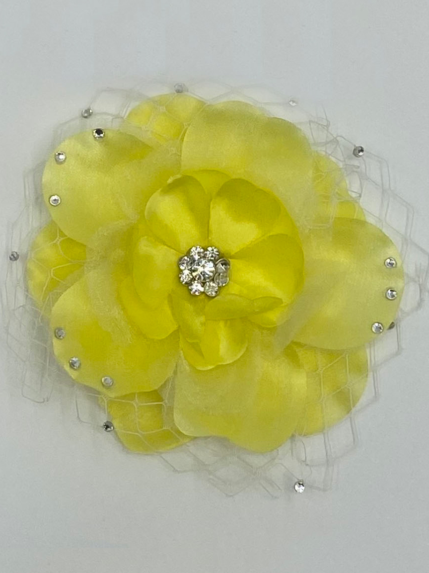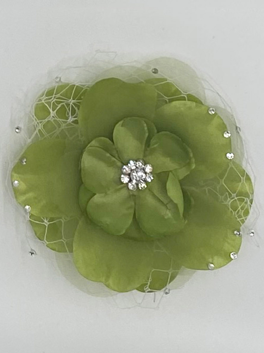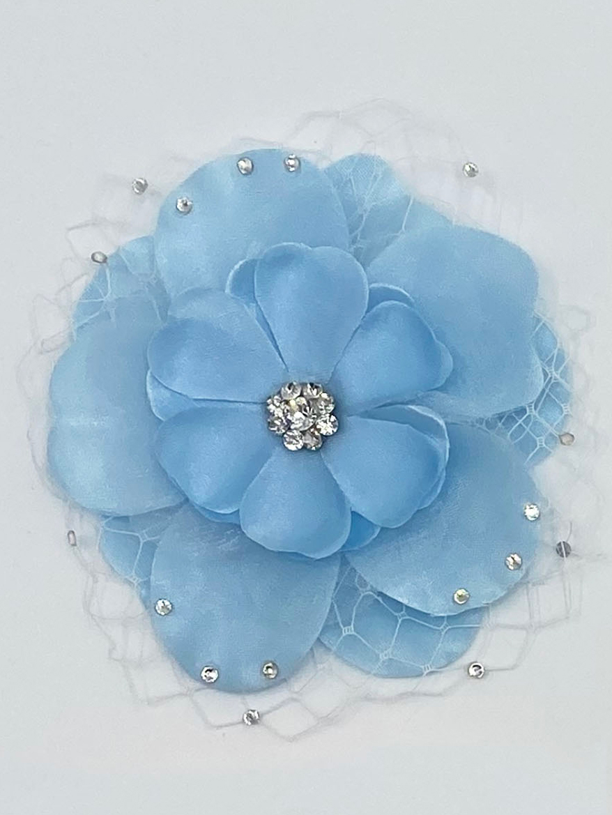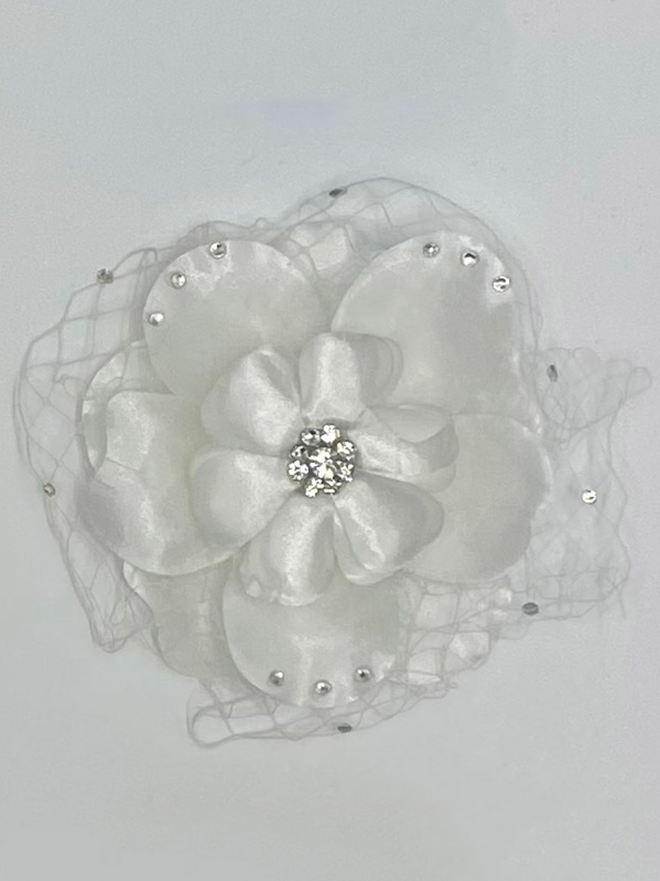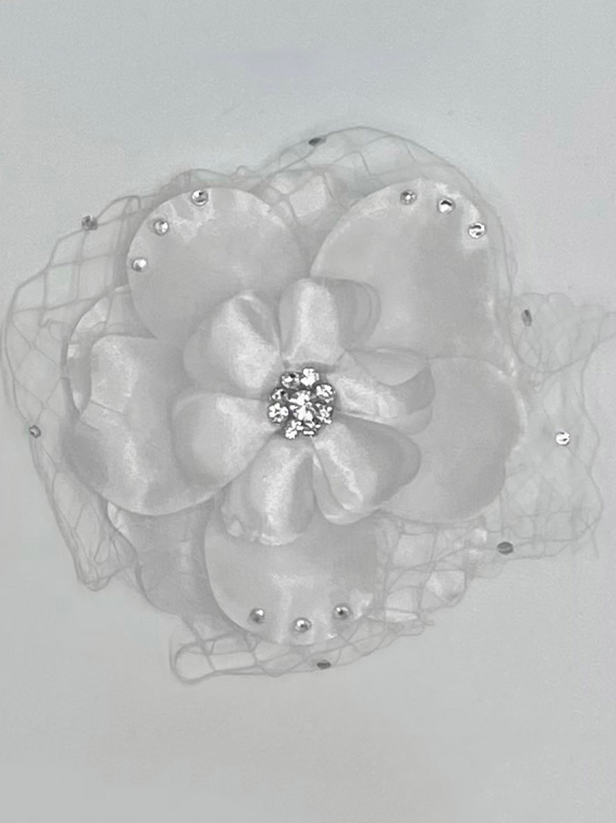 Flower hair clips with Rhinestone & White fishnet accents