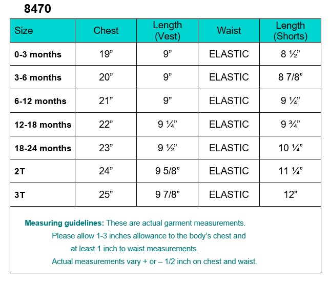 • Size Description: XS (3-6m), S (6-9m), M (9-12m), L (12-18m), XL (18-24m)