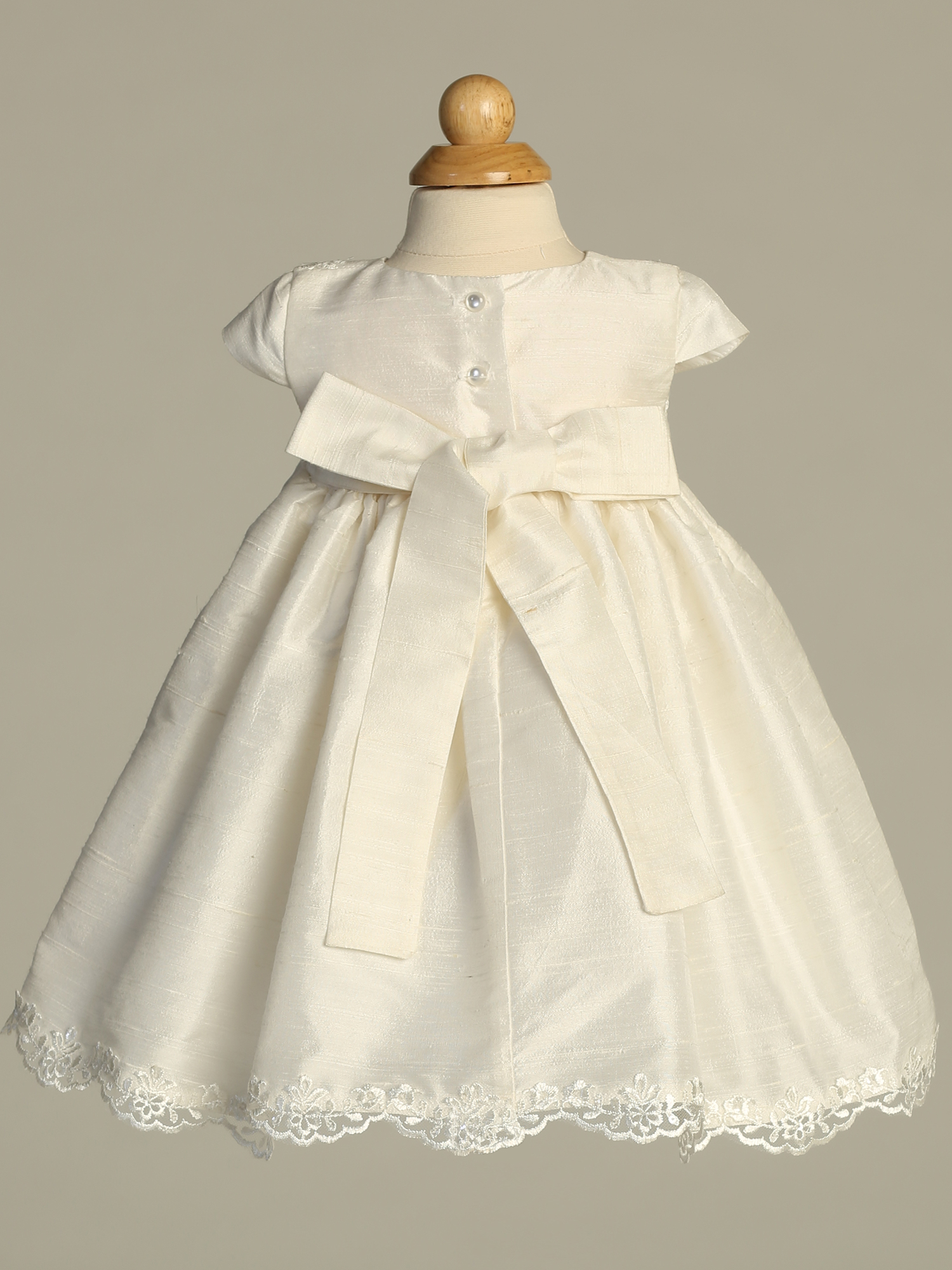 Raw silk dress with embroidered tulle and sequins