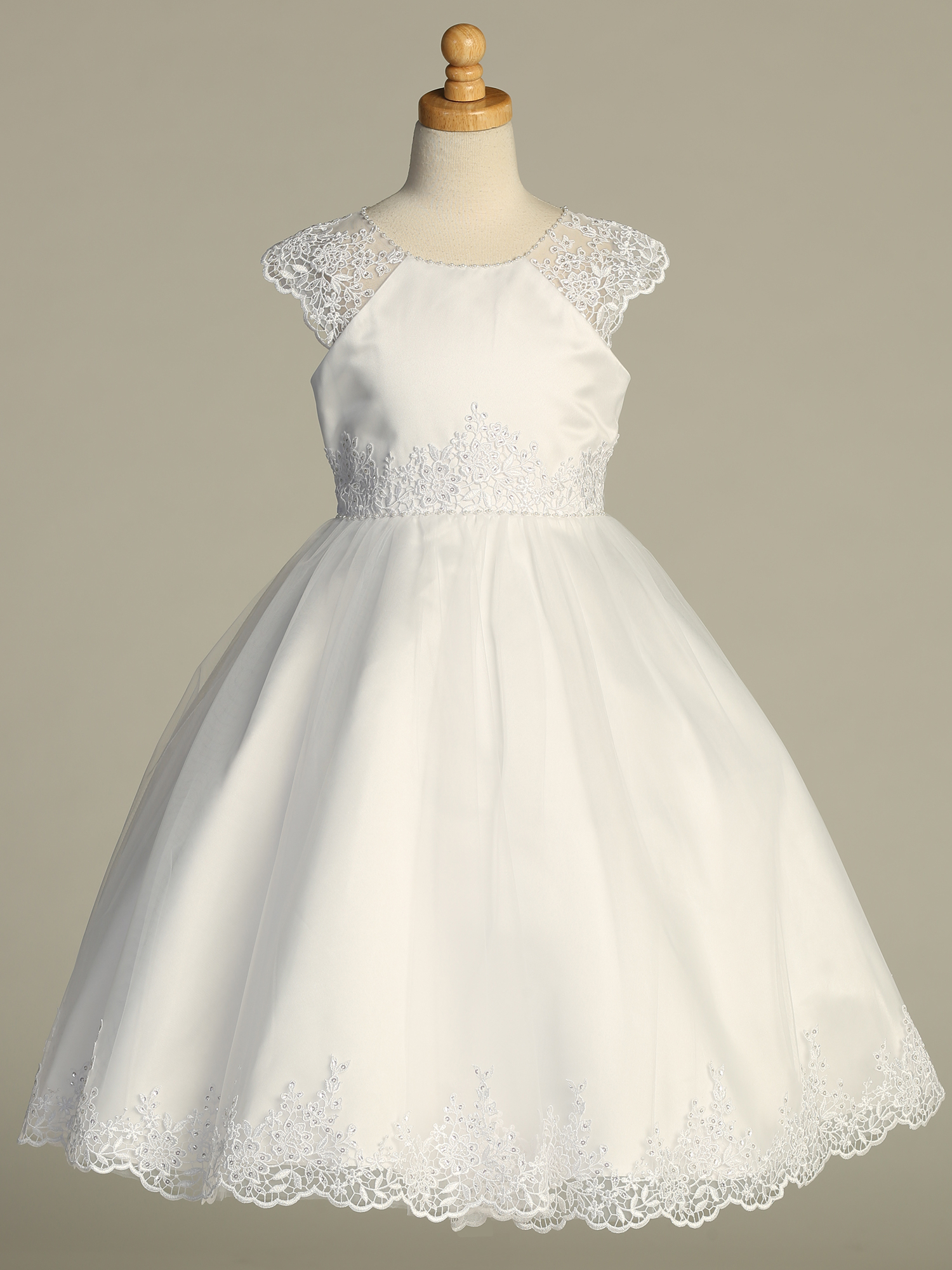 Beads and pearls on neckline and waist