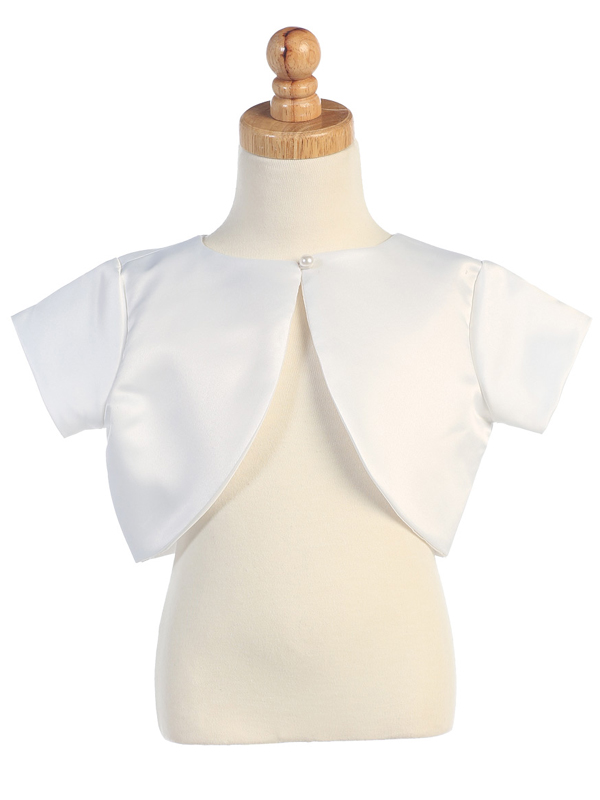 Short sleeve satin bolero with pearl closure