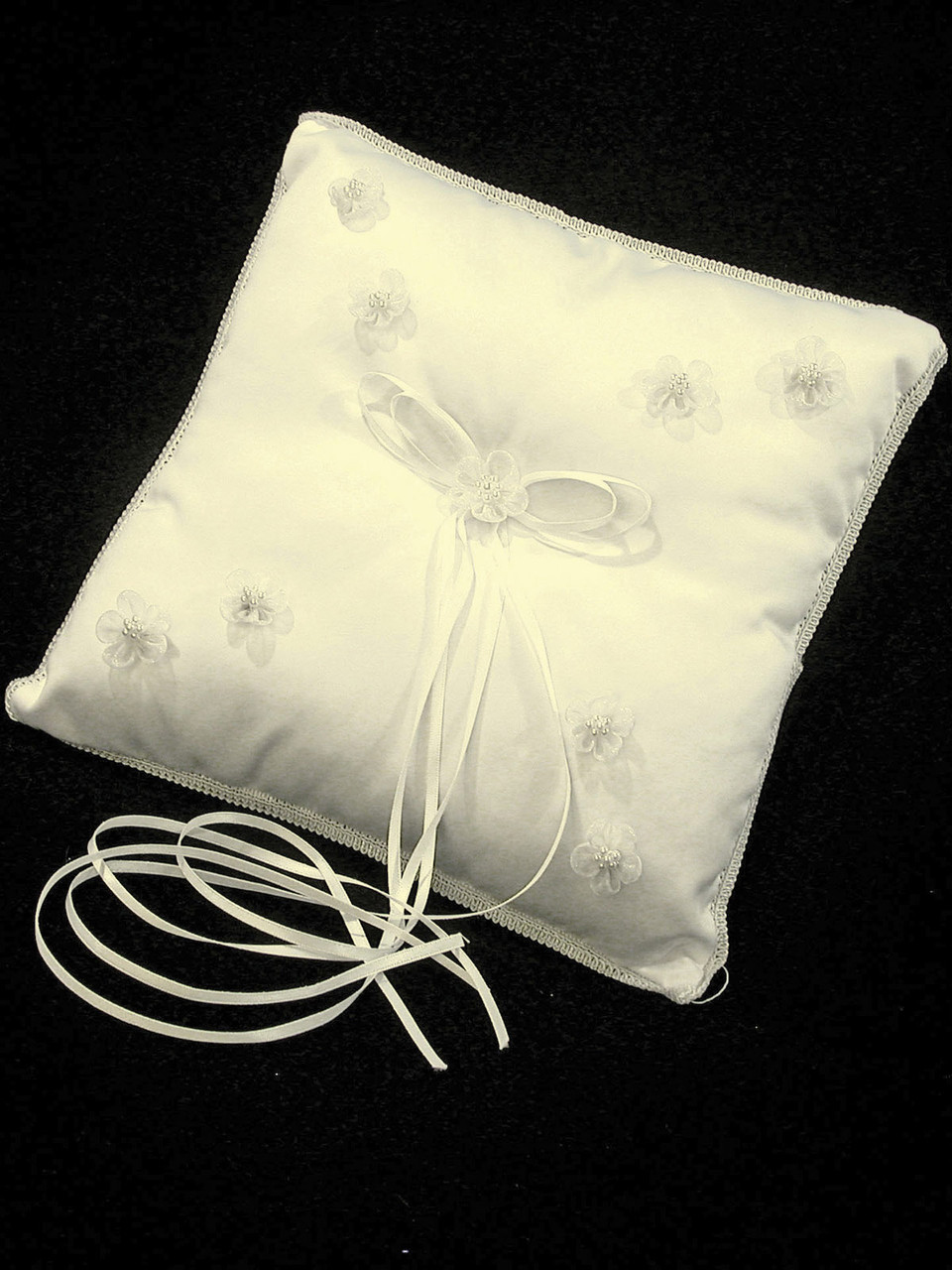 Ivory ring bearer pillow - satin material with rosebuds accents
